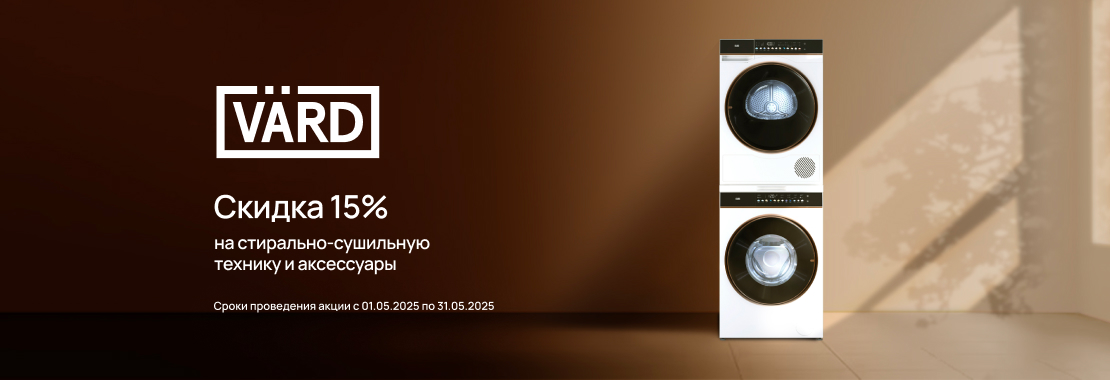 В акции участвуют все модели стиральных, сушильных и стирально-сушильных машин Vard, а также соединительные комплекты.