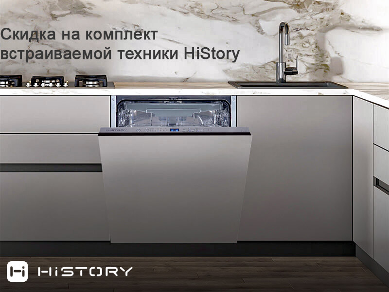 При покупке комплектов встраиваемой кухонной техники бренда HiSTORY предоставляется скидка на всю покупку.